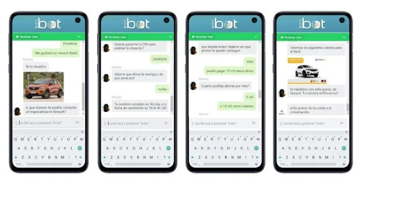 El bot, es un programa informático que efectúa automáticamente tareas repetitivas a través de Internet y que reemplaza a una persona. En este caso es Mariela el nombre de la vendedora bot que con inteligencia artificial, maneja toda la información necesaria para la venta de un auto.