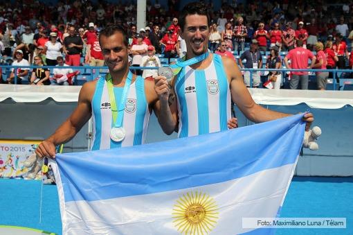 El binomio argentino ganó la presea de oro en la misma prueba en los Juegos Odesur de Medellín, Colombia. La prueba se disputó en la pista de remo y canotaje en la laguna de Zapotlán el Grande de Ciudad Guzmán, ubicada a 139 kilómetros al sur de Guadalajara.