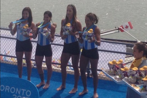 El equipo de cuatro pares de remos cortos femenino , obtuvo la medalla de bronce para Argentina