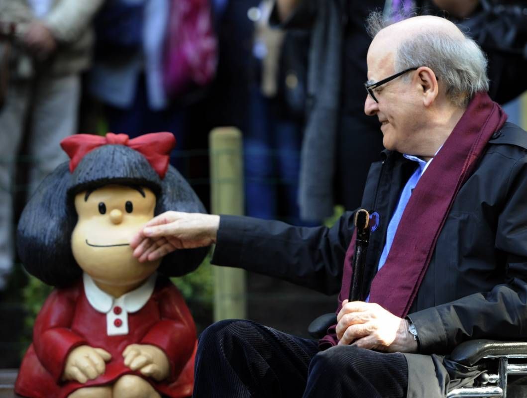 El mendocino Joaquín Salvador Lavado, Quino, recibió esta mañana el premio Premio Príncipe de Asturias de Comunicación y Humanidades de las manos del Rey Felipe VI, pero no fue el único homenaje que se le hizo al historietista. A lo largo de la semana, el «padre» de Mafalda participó de un encuentro con «mafaldólogos» españoles y descubrió una escultura de 80 centímetros -gemela de la instalada en San Telmo- con la que el Ayuntamiento de Oviedo homenajea al personaje creado hace 50 años.